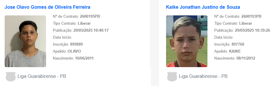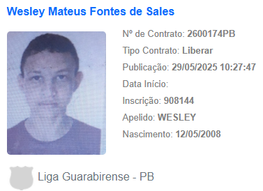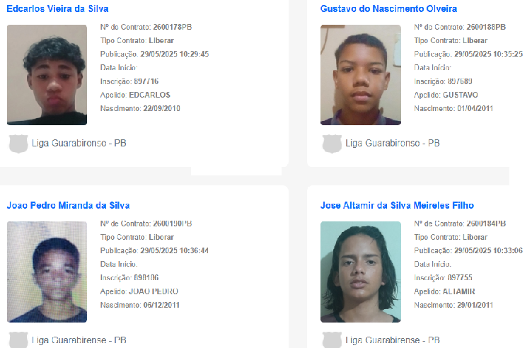O time da Liga Guarabirense confirmou a liberação de 13 jogadores nesta quinta-feira (29), junto ao boletim informativo diário da CBF. Todos estão liberados para atuarem por outras equipes a partir de agora. A iniciativa de dispensar todos os atletas surgiu depois que a equipe guarabirense não conseguiu a classificação para a segunda fase do Campeonato Paraibano de Futebol Masculino Sub-17.