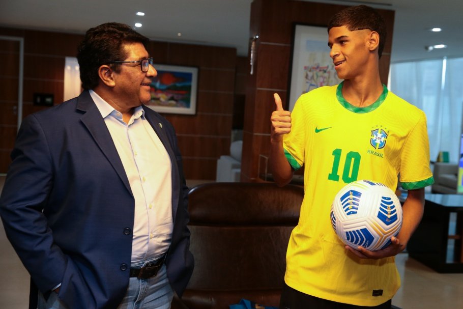 Astro da internet foi recebido na Casa do Futebol Brasileiro pelo dirigente, recebeu camisa personalizada e conheceu o espaço dedicado à memória da Seleção Brasileira. Com informações da CBF