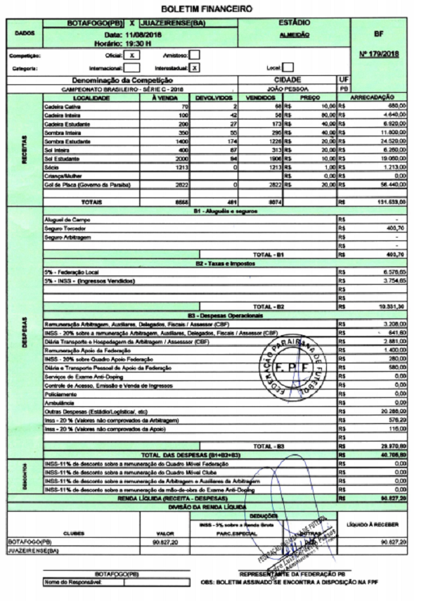 No jogo passado quando o Botafogo empatou com a Juazeirense-BA, em 2 a 0, disputado no estádio Almeidão, pela última rodada da primeira fase do Campeonato Brasileiro da Série C, o boletim interno apontou um total de público de 8.555 torcedores.