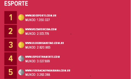 Quando o assunto é divulgação do esporte, o rankings e índices de site da internet paraibana de acordo com dados de acessos...