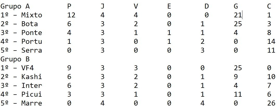 O Grupo B tem o VF4 disparado na liderança com nove pontos e 25 gols de saldo e ainda tem um jogo para cumprir. As Panteras vão encarar na última partida rodada da primeira fase, o time da Picuiense, segunda-feira (31), às 15h, na Vila Olímpica Plínio Lemos, em Campina Grande.