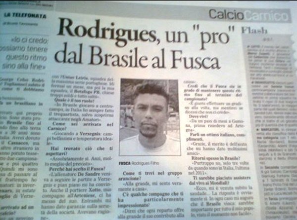 O meio-campista Jorginho que se destacou no Botafogo nos anos 90 e atualmente joga joga na Europa é destaque na imprensa internacional em reportagem exibida no Calcio Corníco, na Itália, onde ele é conhecido como Rodrigues. A informação foi passada por dona Vasti, mãe de Jorginho.