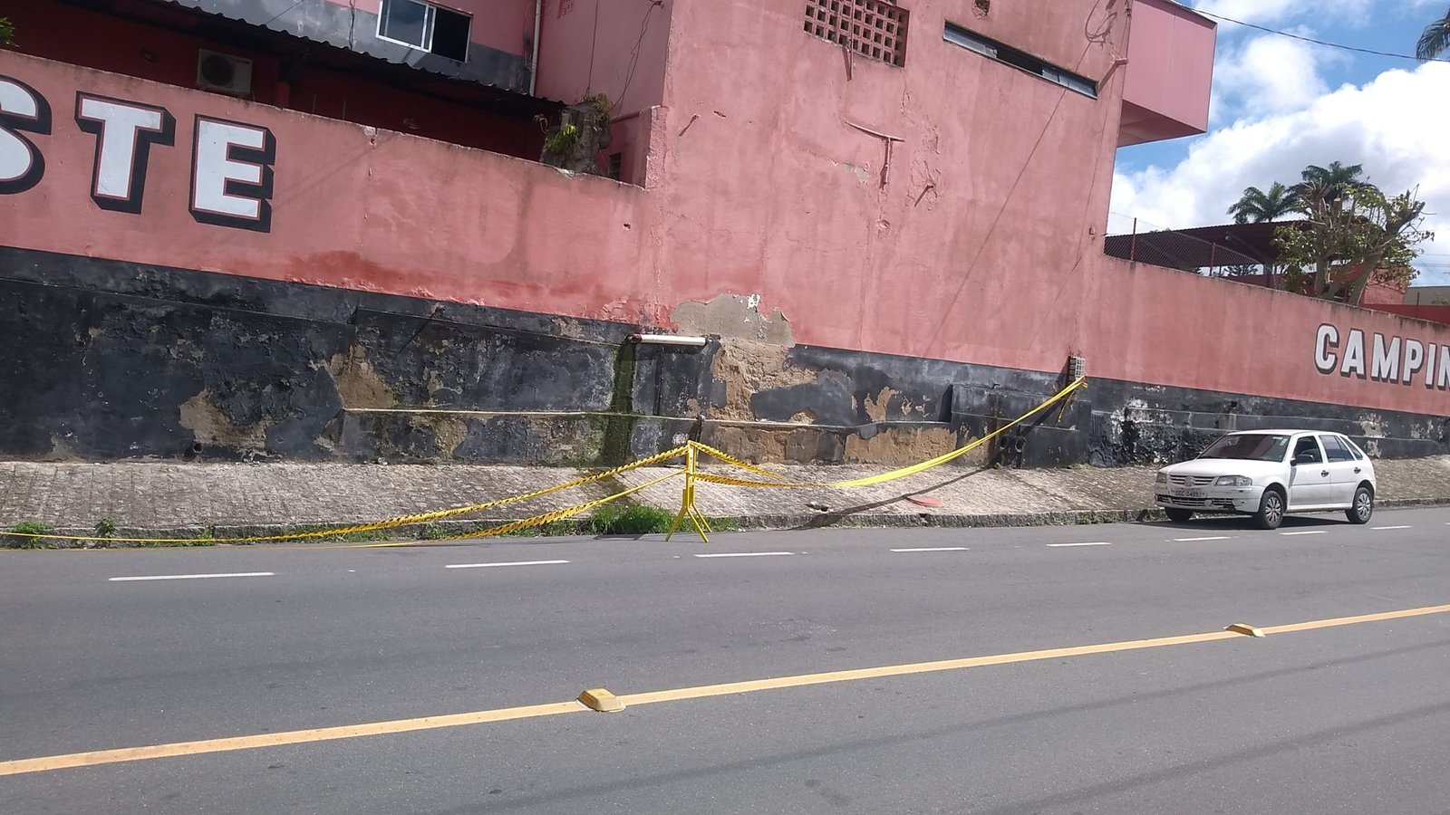 “Assim deixa eu te explicar, com relação ao muro. Houve um processo de infiltração de água que foi agravado com com as chuvas dos últimos dias. Então o muro foi escorado e a defesa civil fez o devido isolamento para evitar o trânsito de pedestres ou veículos no local”, disse o engenheiro do clube, Wiliam Paiva.