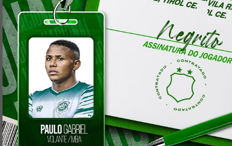 O Nacional de Patos anuncia mais um grande reforço para a temporada 2025: o volante e meia Paulo Gabriel, o Negrito, jogador versátil e de muita qualidade técnica, que chega para fortalecer o meio-campo do Verdão.