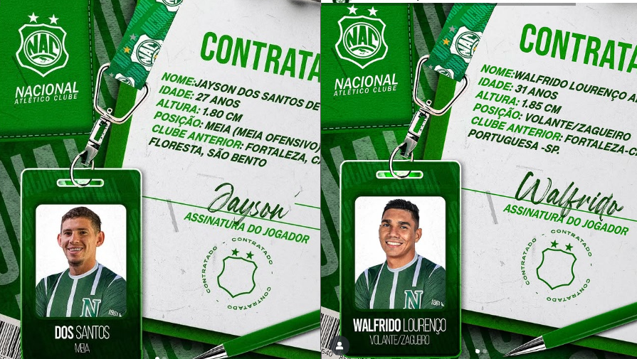 O meia Dos Santos vestirá as cores do Nacional de Patos, Verdão Maravilha, o mais tradicional do Sertão na próxima temporada do Paraibano! O atleta já teve passagens por grandes clubes, entre eles, Fortaleza, Floresta e São Bento.