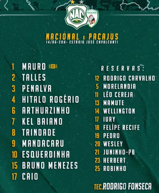 O Nacional de Patos venceu o Pacajus-CE, por 1 a 0, no estádio José Cavalcanti, na cidade de Patos pela Série D do Campeonato Brasileiro. O meia Léo Cereja fez o gol do Nacional aos 25 minutos do segundo tempo. Com isso, o time patoense chega aos 13 pontos ganhos e volta a ocupar a terceira colocação do Grupo A3.