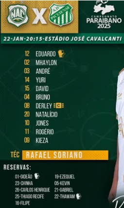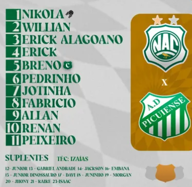 Nacional de Patos 2×2 Picuiense, no José Cavalcanti, às 20h15, na cidade de Patos. José Cavalcanti 20h15