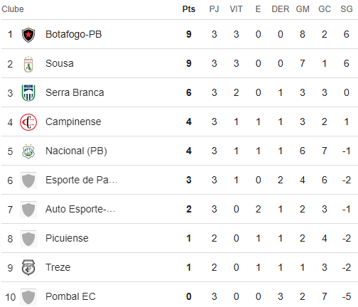 Depois dos dois jogos disputados nesta quarta-feira o soesporte atualiza os números do Campeonato Paraibano da Primeira Divisão de 2025. A partida de cima não sofreu alteração, mas a parte de baixo tem novo inquilino. O Treze é o nono colocado com um ponto ganho e um gol marcado.
