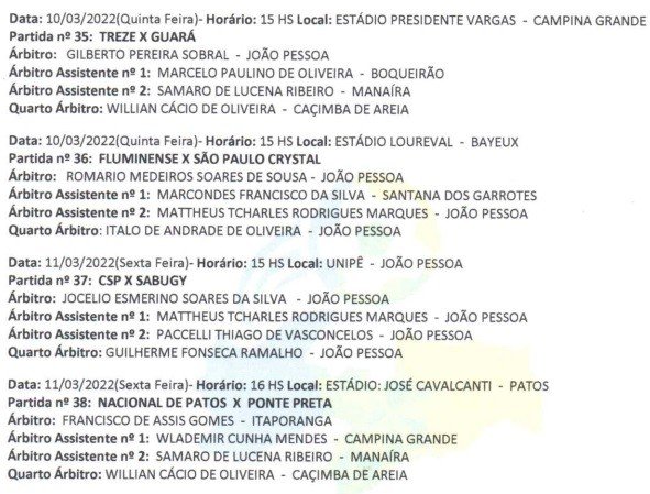 TREZE x GUARÁ – Quinta-feira (10/03) às 15h00 no estádio Presidente Vargas, em