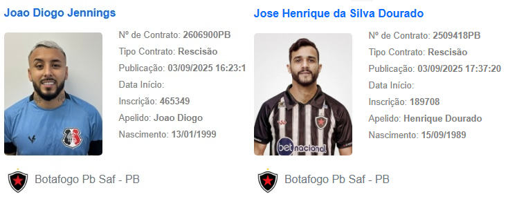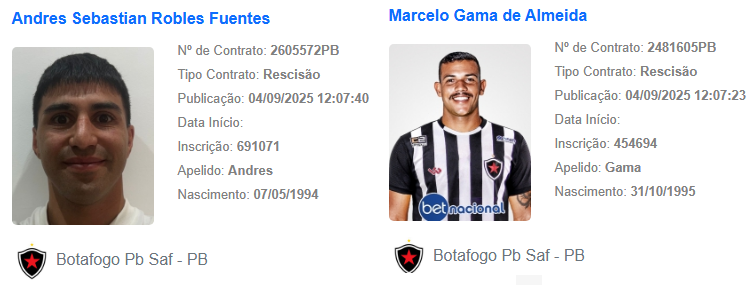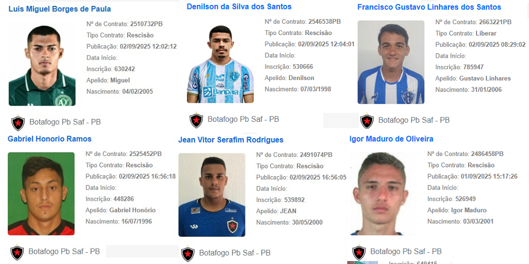 Dez jogadores estão fora do Botafogo-PB após o encerramento da temporada de 2025 para o time alvinegro da Capital da Paraíba.