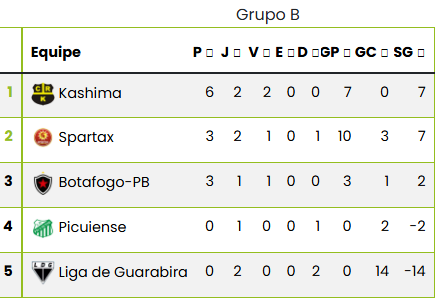 17h – Spartax 9 x 0 Liga de Guarabira, no estádio Teixeirão, em Santa Rita