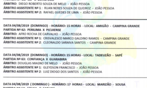 A Federação Paraibana de Futebol definiu os árbitros dos jogos da segunda fase do Campeonato Paraibano da categoria até 19 anos. Os...