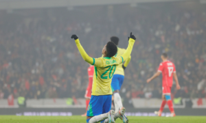 Estêvão comemora o gol do empate com a Tunísia Rafael Ribeiro / CBF Estêvão marcou o gol da Seleção, que fez seu...