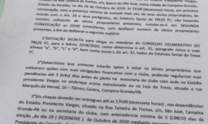 O presidente do Conselho Deliberativo do Treze, Emir Gurjão, divulgou edital para nova eleição para escolher a nova diretoria do clube. De...