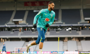 Matheus Cunha corre durante treino pela Seleção na Decathlon Arena, em LilleCréditos: Rafael Ribeiro / CBF A Seleção Brasileira entra em campo...