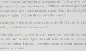 As duas partidas entre Campinense e Botafogo acontecem na quinta-feira, dia 5; e segunda-feira dia 9, de acordo com comunicado da Federação Paraibana...