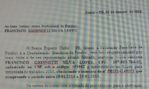 O presidente de Sousa, Aldeone Abrante divulgou uma nota fazendo uma convocação ao meia Gionnotti, para se apresentar imediatamente ao clube, para...