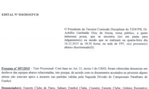 O resurso do Nacional de Patos entrará em pauta nesta quarta-feira, no Tribunal de Justiça Desportiva de Futebol da Paraíba. Está é a...