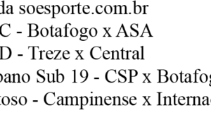 A agenda do soesporte neste final de semana começa no sábado com a Série C: Botafogo 2×2 ASA; amistoso: Campinense 0x0 Internacional...