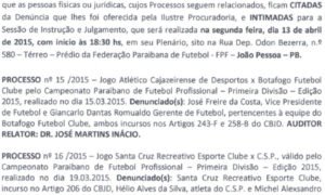 A Primeira CD julgará os seguintes processos: processo nº 15/2015 Denunciados: José Freire da Costa e Giancarlo Dantas Romualdo. Processo nº 16/2015....