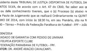 O Pleno do Tribunal de Justiça Desportiva da Paraíba marcou para o próximo dia 25, o julgamento do pedido de Mandado de...