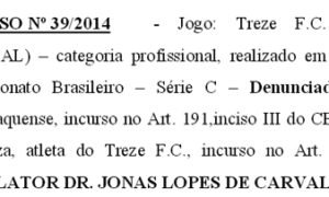 Dois jogadores do Treze serão julgados pelo Superior de Tribunal de Justiça Desportiva da CBF. O ala Fernandes estão na pauta de...