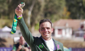 Estreante na competição continental, brasileiro foi o melhor do dia montando Chevaux Primavera Montana Império Egípcio Na grande final do hipismo saltos...