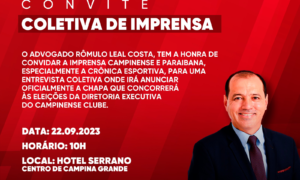 Nesta sexta-feira (22), o conselheiro Rômulo Leal faz o lançamento do seu nome a candidato a presidente da diretoria executiva do Campinense....