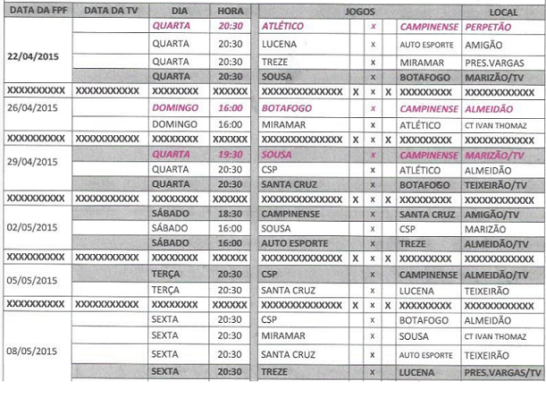 Com quatro jogos programados para este meio de semana, o Campeonato Paraibano de 2015, prossegue. Mas, a Federação mudou toda tabela com relação aos jogos que estavam marcados para o final de semana, que tem apenas dois jogos. Veja toda programação até o final da fase de volta do primeiro turno.