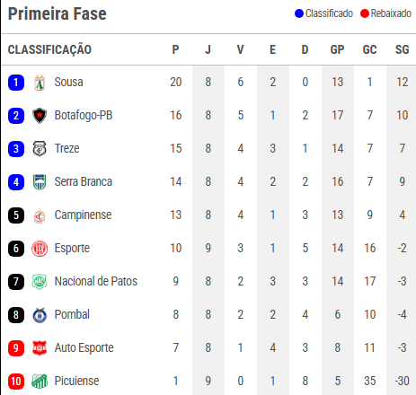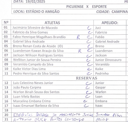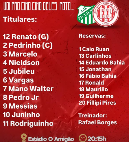 Picuiense 0x5 Esporte de Patos, Campeonato Paraibano de 2025, nona rodada da primeira fase, nesta quarta-feira (19), às 20h15, no estádio Amigão, em Campina Grande.