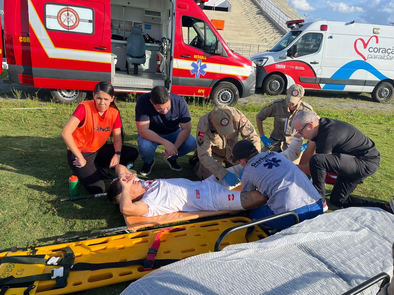 Lesão no joelho de Diego Borges do Auto Esporte e será levado para o Hospital de Trauma CG. Fotos – João Paulo
