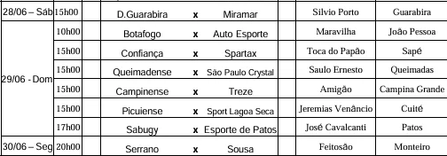 28/06 sáb 16:00 A04 Sergipe SE x Penedense AL Arena Batistão Aracaju SE