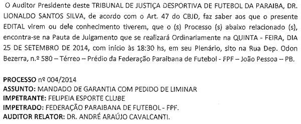 FutebolPleno do TJD/PB julga Mandado do Felipeia Compartilhar Tweetar Compartilhar Compartilhar Email ComentáriosO Pleno do Tribunal de Justiça Desportiva da Paraíba marcou para o próximo dia 25, o julgamento do pedido de Mandado de Garantia formulado pelo Felipeia contra a Junta Governativa da Federação Paraibana de Futebol. Notícias Relacionadas: Compartilhar Tweetar Compartilhar Compartilhar Email Clique para comentarDeixe um Comentário Cancelar respostaO seu endereço de e-mail não será publicado. Campos obrigatórios são marcados com *Comentário *Nome * E-mail * Site Salvar meus dados neste navegador para a próxima vez que eu comentar. ΔEsse site utiliza o Akismet para reduzir spam. Aprenda como seus dados de comentários são processados.