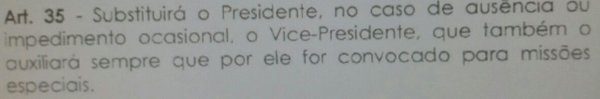 De acordo com o artigo 35 do Estatuto da Federação – “substituirá o Presidente, no caso de ausência ou impedimento ocasional, o Vice-Presidente que também, o auxiliará sempre que por ele for convocado para missões especiais.”