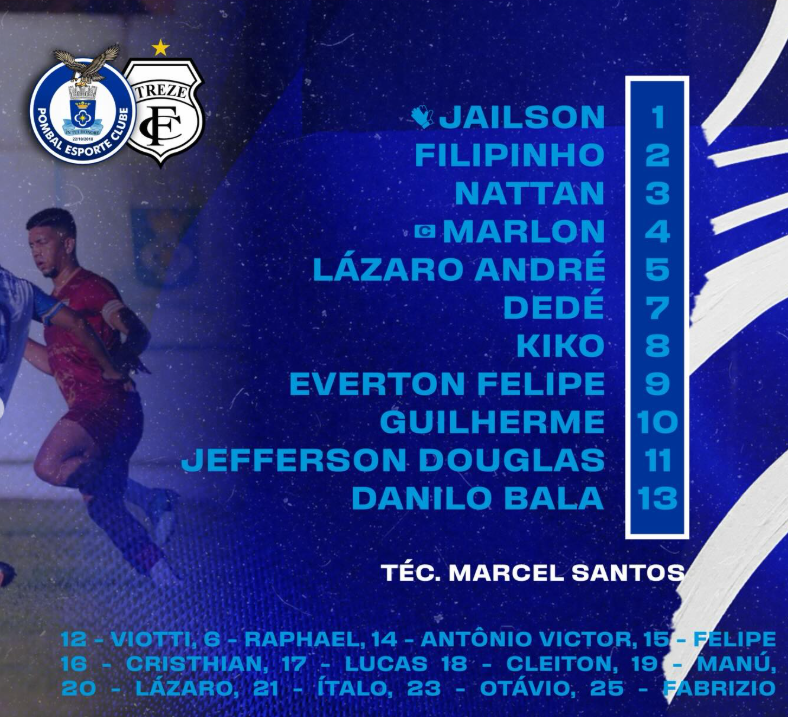 O Treze terá dois desfalques contra o Pombal pela 2ª rodada do Campeonato Paraibano: Vinícius Bala, poupado por trauma no tornozelo, e Lucas Vieira, suspenso pelo cartão vermelho.