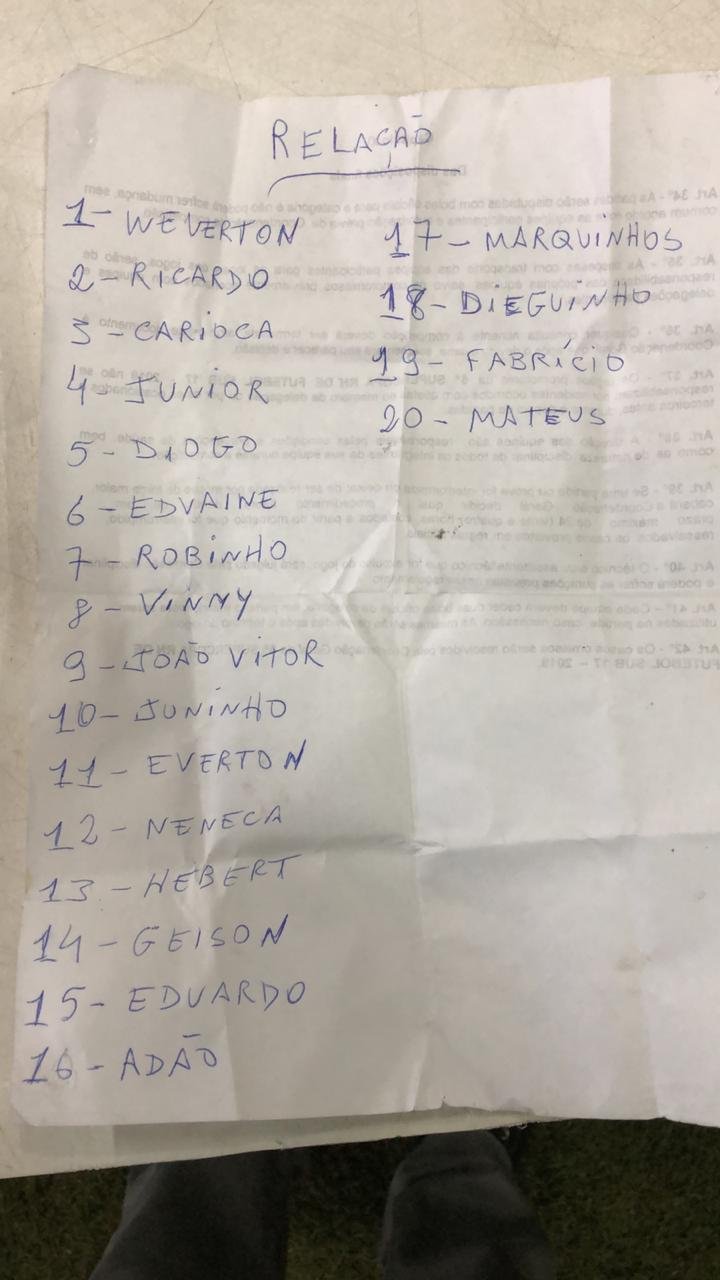 A diretoria do clube, por razões até o momento desconhecidas, escreveu a mão (ato manuscrito) a relação de atletas e entregou ao delegado do jogo, numa atitude sequer vista entre as equipes amadoras que disputam uma competição