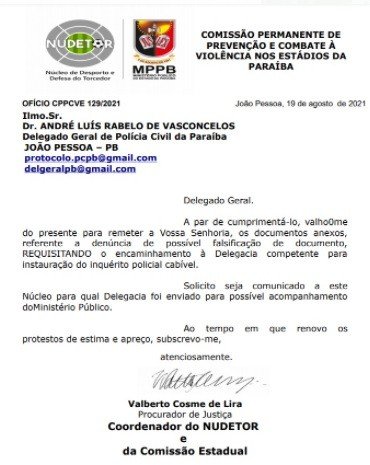 “Por fim, o clube com mais títulos do futebol estadual, uma instituição de quase 90 anos de serviços prestados ao desporto paraibano, berço de diversos jogadores que saíram da Paraíba para conquistar os campos do Brasil, reforça que não compactua com quaisquer irregularidades. “O Botafogo Futebol Clube espera que a denúncia seja apurada e o fato esclarecido”.