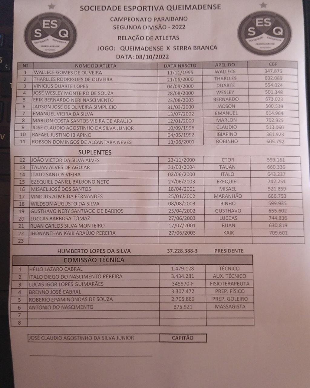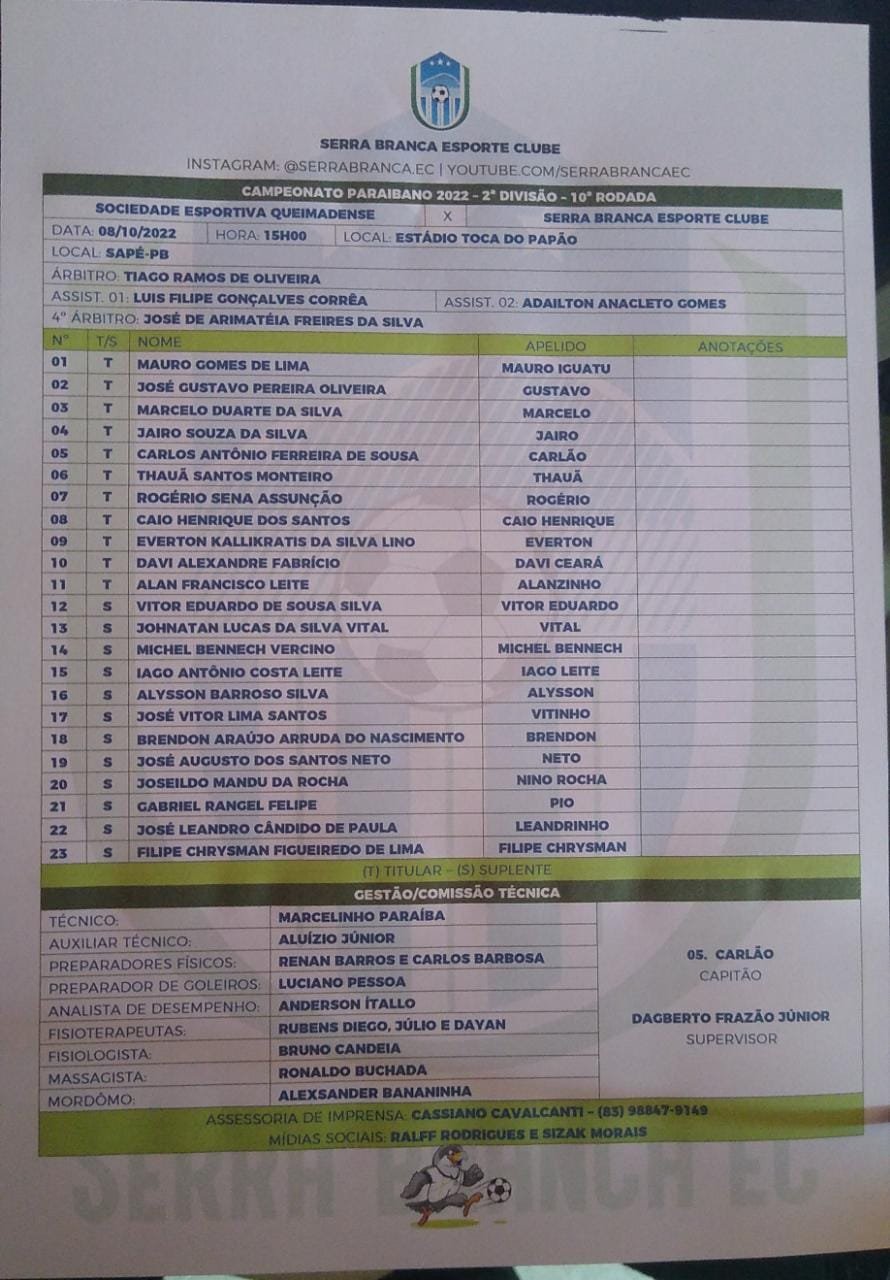 A partir das 15h, mais uma vez no estádio Toca do Papão, em Sapé, as equipes de Queimadense e Serra Branca lutaram pelo topo. Resultado final 0 a 0. O time de Queimadas tem 19 pontos e o adversário soma 16.