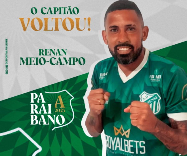 Com a volta do meia Renan, o elenco da Picuiense vai tomando forma, com base na formação do grupo que vai disputar o Campeonato Paraibano da Primeira Divisão de 2025. O time tricolor tem estreia programada para enfrentar o Sousa, no dia 11 de janeiro.