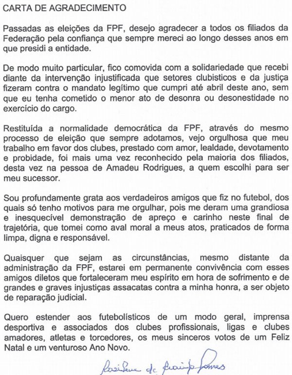 FutebolRosilene Gomes divulga carta de acredecimento Compartilhar Tweetar Compartilhar Compartilhar Email ComentáriosA empresária Rosilene Gomes, ex-presidente da Federação Paraibana de Futebol divulgou carta de agradecimento aos dirigentes de clubes profissionais, amadores e ligas, que votaram em Amadeu Rodrigues, eleito para assumir o cargo de presidente da FPF. Notícias Relacionadas: Compartilhar Tweetar Compartilhar Compartilhar Email Clique para comentarDeixe um Comentário Cancelar respostaO seu endereço de e-mail não será publicado. Campos obrigatórios são marcados com *Comentário *Nome * E-mail * Site Salvar meus dados neste navegador para a próxima vez que eu comentar. ΔEsse site utiliza o Akismet para reduzir spam. Aprenda como seus dados de comentários são processados.