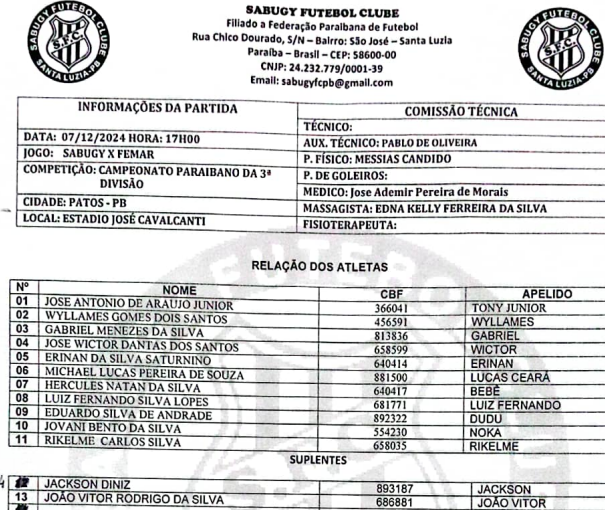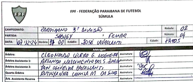 A equipe do Sabugy não precisou entrar em campo neste sábado (7), para conquistar três pontos no Campeonato Paraibano da terceira divisão de 2025.