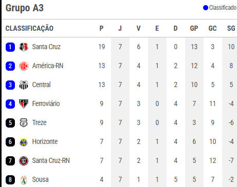 O Santa Cruz-PE fica cada vez ais líder do Grupo A3 do Campeonato Brasileiro da Série D, com 19 pontos, depois da vitória de 3 a 1 sobre o Ferroviário-CE, neste domingo (1), o estádio do Arruda, e Recife-PE.