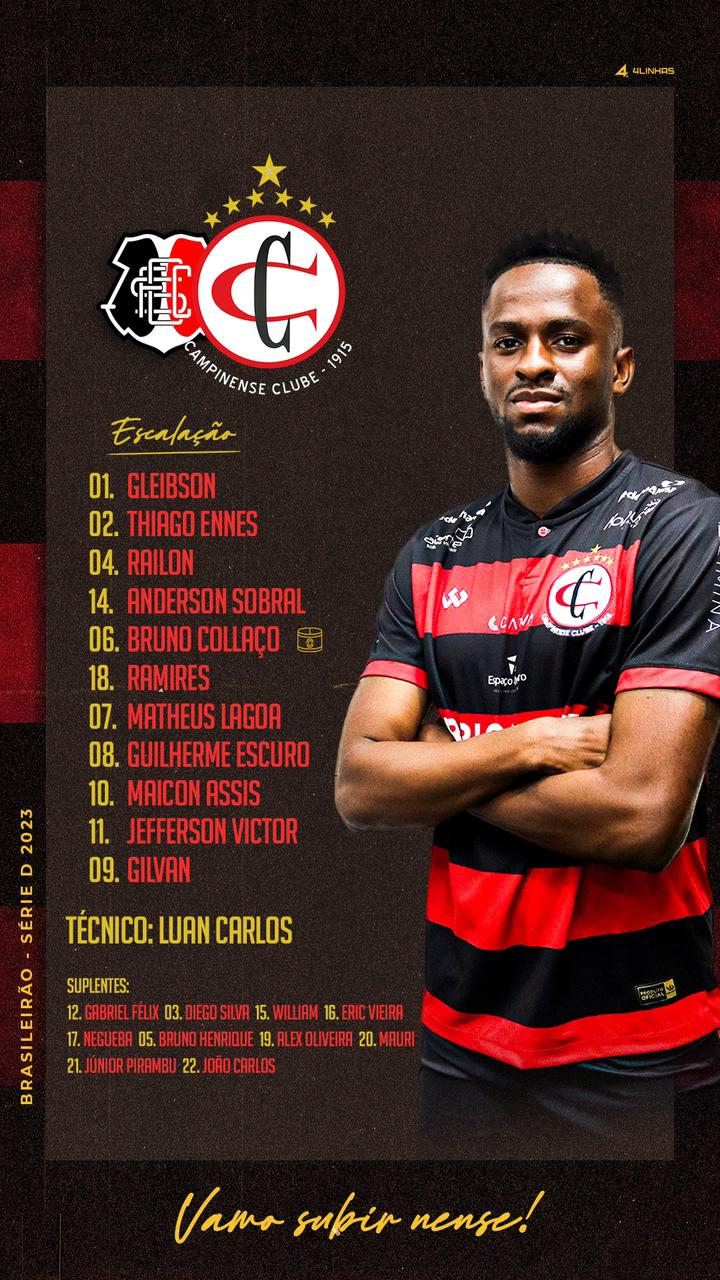 CAMPINENSE: Gleibson; Thiago Ennes (João Carlos), Railon, Anderson Sobral e Bruno Colaço; Ramires, Matheus Lagoa e Guilherme Escuro (Júnior Pirambu); Maicon Assis, Jefferson Victor (Negueba) e Gilvan. Técnico: Luan Carlos.