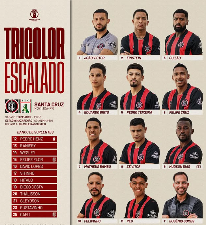 Santa Cruz-RN 1×0 Sousa, em Goianinha-RN, no estádio Nazarezão-RN, pela primeira rodada do Campeonato Brasileiro da Série D. Fim de jogo. O único gol do time do Rio Grande do Norte foi marcado pelo zagueiro Guizão, aos 30 minutos do segundo tempo.