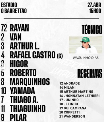Na estreia do Campeonato Brasileiro da Série D, Santa Cruz-SC 3×4 Treze, pela Série D, neste sábado (28), no campo Barretão, em Ceará-Mirim-CE, de propriedade do Globo-RN.