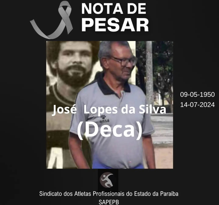 O Sindicato dos Atletas Profissionais do Estado da Paraíba – SAPEPB divulgou nota de pesar informando o falecimento do ex atleta Deca (José Lopes da Silva, 74 anos.