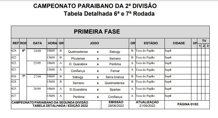 Concluída a fase dos jogos de ida, a Segunda Divisão do Campeonato Paraibano continua sendo disputada em Sapé, no estádio Toca do Papão.