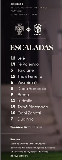 A Seleção Brasileira Feminina 5×0 Portugal, em um amistoso nesta terça-feira (2). Os gols marcados pela meia Gabi Zanotti, Ludmila e Dudinha, todos no primeiro tempo.