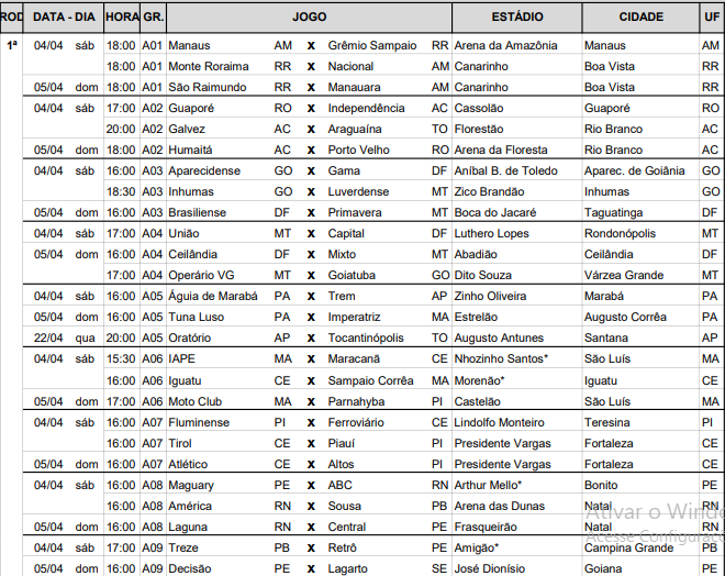 A tabela da primeira fase da Série D do Campeonato Brasileiro indica que serão disputados 48 jogos na rodada inicial, que começa em 4 de abril. A edição 2026 conta com um recorde de clubes: 96 ao todo. A competição, em sua primeira fase, terá 16 grupos com seis equipes casa. Classificam-se para a fase seguinte os quatro mais bem pontuados de cada chave.