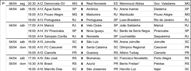 Veja os jogos deste fim de semana